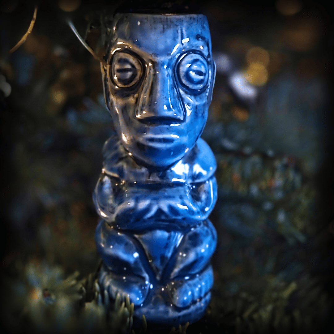 Miniature Tiki mugs with side-hole hangers so they can live on your tree all season, then come down later as a rum sipper.